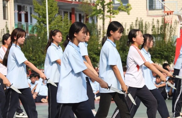 操场上,彩旗飘扬,口号声此起彼伏。在军体拳表演中,同学们个个精神抖擞,出拳、踢腿、转身,每一个动作都充满了力量与美感,赢得了现场观众的阵阵掌声。